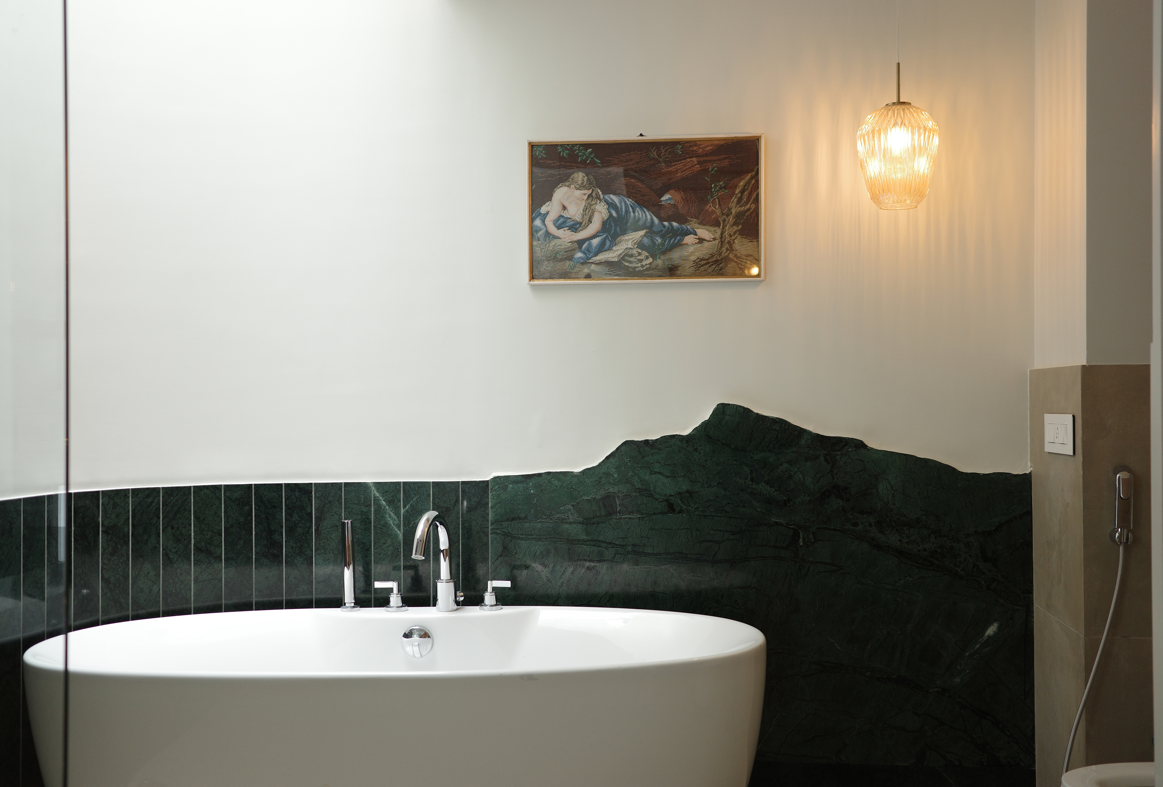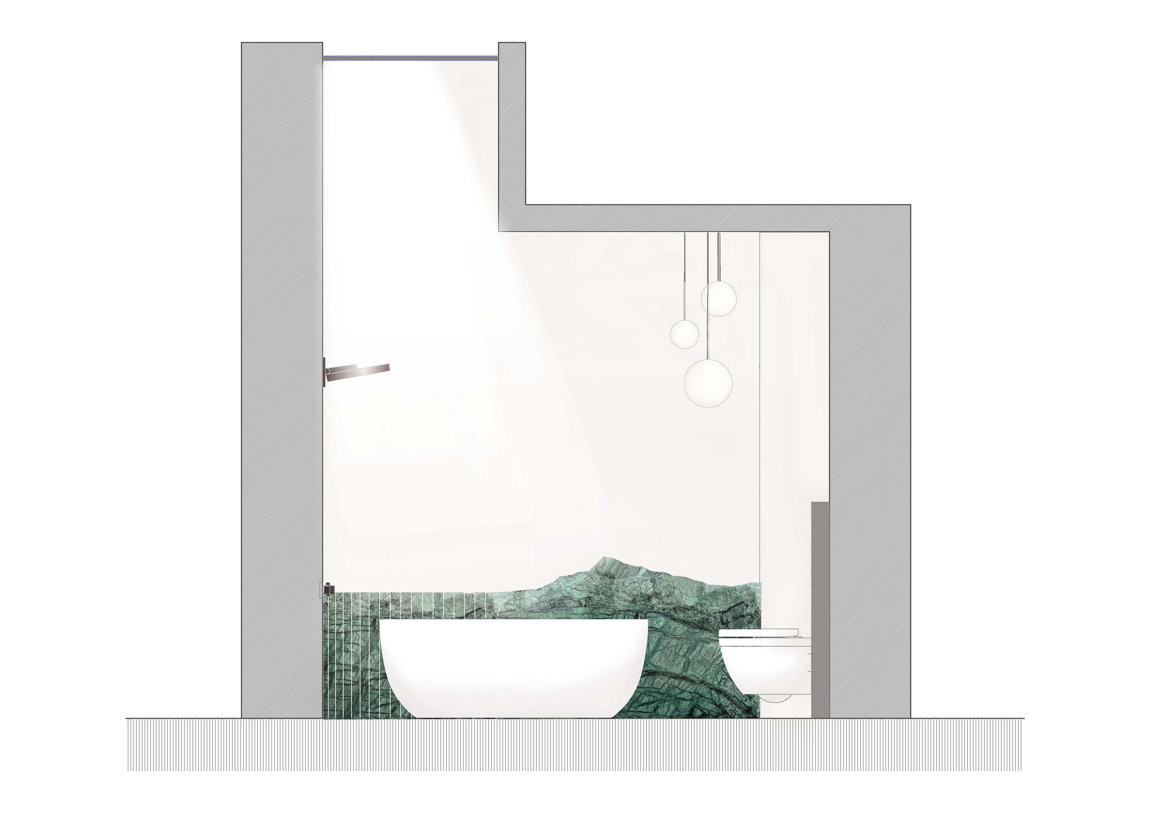 On our search for the perfect Baroda Marble, we fell in love with this neglected piece. Its jagged edges made it look like a mountain and the veins reminded us of the sea. We designed a way to turn the marble mountain into an art installation.